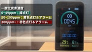 50ppm以上になると、黄色の警告灯が点滅し警報音でお知らせ。