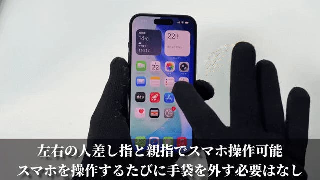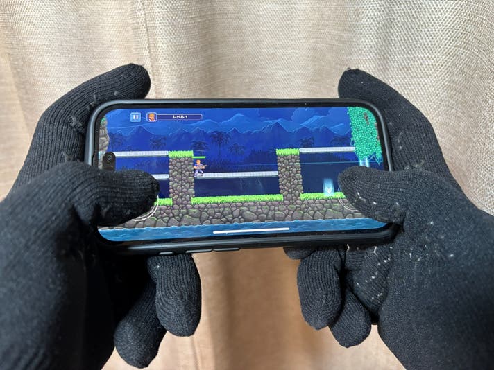 両手の親指もスマホ操作に対応しているので、手袋をしたままスマホのゲームも楽しめます。