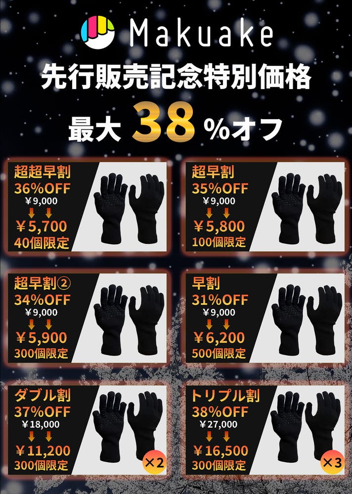 「Makuake(マクアケ)」は、実行者の想いを応援購入によって実現するアタラシイものやサービスのプラットフォームです。このページは、 プロダクトカテゴリの 「濡れないから冷えない。そのままスマホ操作可。冬の『面倒』を解決する、理想の手袋。」プロジェクト詳細ページです。