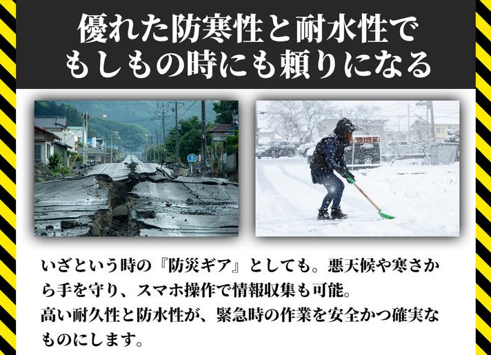 - 【手袋を外さない】導電性素材により両手の親指と人差し指でスマホなどの操作が可能!