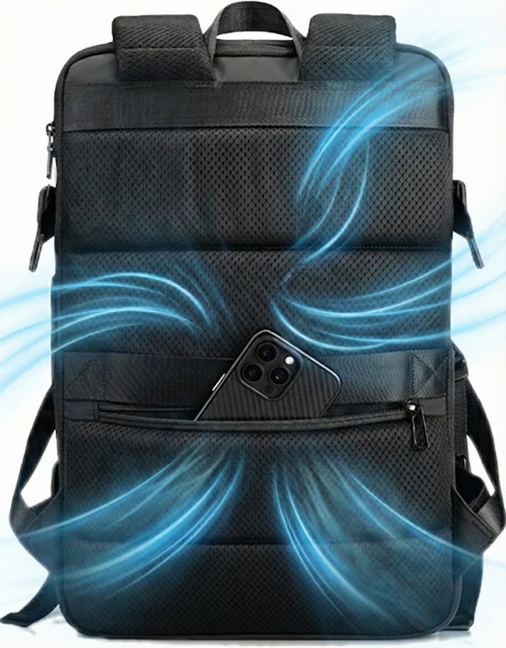 3D立体構造が熱を効率的に逃がし、長時間の移動や通勤でも、背中は常にサラッと快適です。