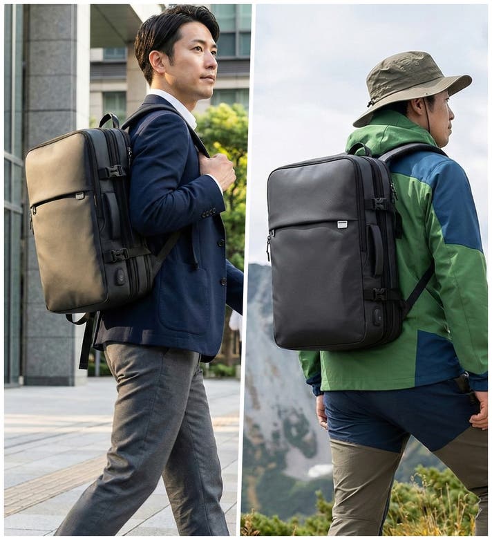拡張と圧縮の機能を兼ね備えているので、自社従来品の同等のサイズのリュックとは比べ物にならない収納力を発揮!