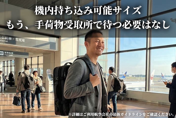 A.はい。リュックは高さ50cm、横31cm、奥行き14cm(拡張時 24cm)です。多くの 国内線や国際線の機内持込規定に対応 しています。 詳細はご利用航空会社の最新ガイドラインをご確認ください。