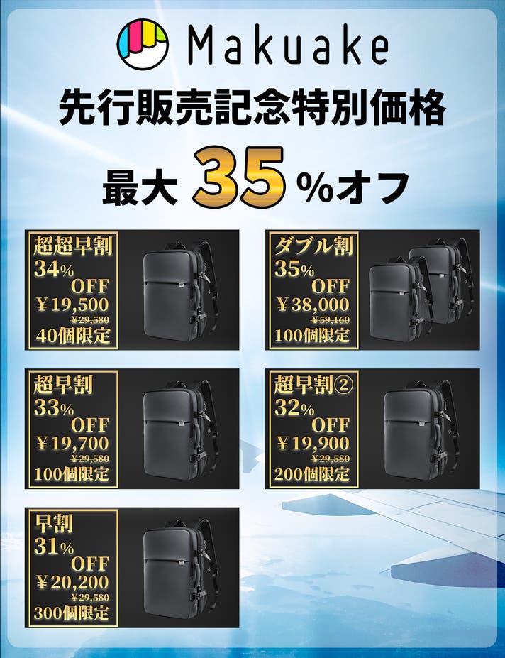 「Makuake(マクアケ)」は、実行者の想いを応援購入によって実現するアタラシイものやサービスのプラットフォームです。このページは、 プロダクトカテゴリの 「旅行から普段使いまでこれ1個で完結!『圧縮』と『拡張』で荷造革命を起こすリュック」プロジェクト詳細ページです。