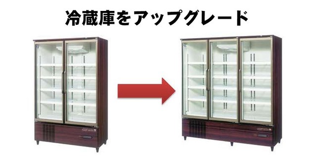 2枚扉の冷蔵庫2台から3枚扉の冷蔵庫2台へ、冷蔵庫をアップグレード。
