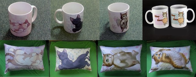 種類は猫マグカップが4種類、猫マクラが4種類です。