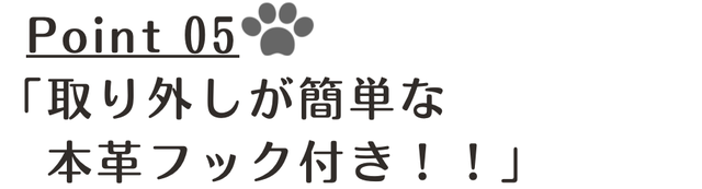取り外しがしやすい本革フックにネコちゃんをぶら下げて一緒にお出かけください。