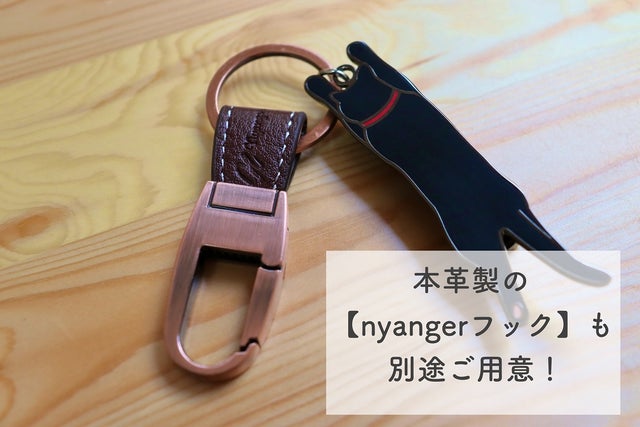 ネコちゃんだけでなく、本革のnyangerフックも別途ご用意しました。