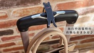 スーツケースのハンドルに寝そべれば、ハンドバッグやエコバッグを引っ掛けてくれます。