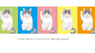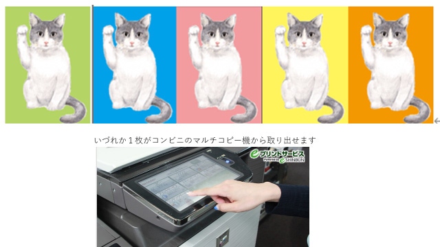 そして全国のコンビニのコピーから取り出せる「人気イラストレーターあやっぺ作品のラッキーチャーム」まねき猫のイラストブロマイド/シールをお付けします。