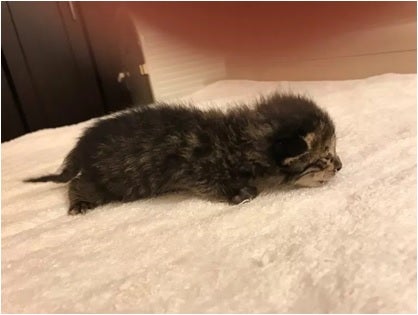↑まだ目が開いたばかりで、歩くのもままならない乳飲み仔猫