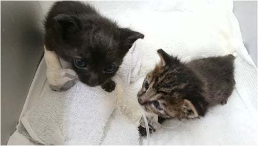 ↑夜間救急動物病院で入院治療を受ける仔猫たち