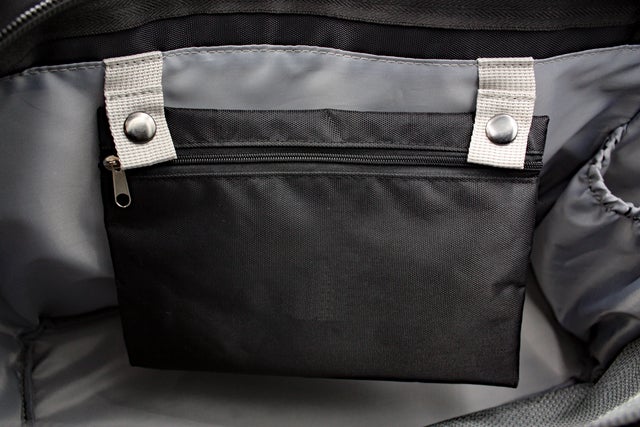 インナーポーチはボタンホック脱着式でバッグ内部に吊り下げて小物を収納できます。