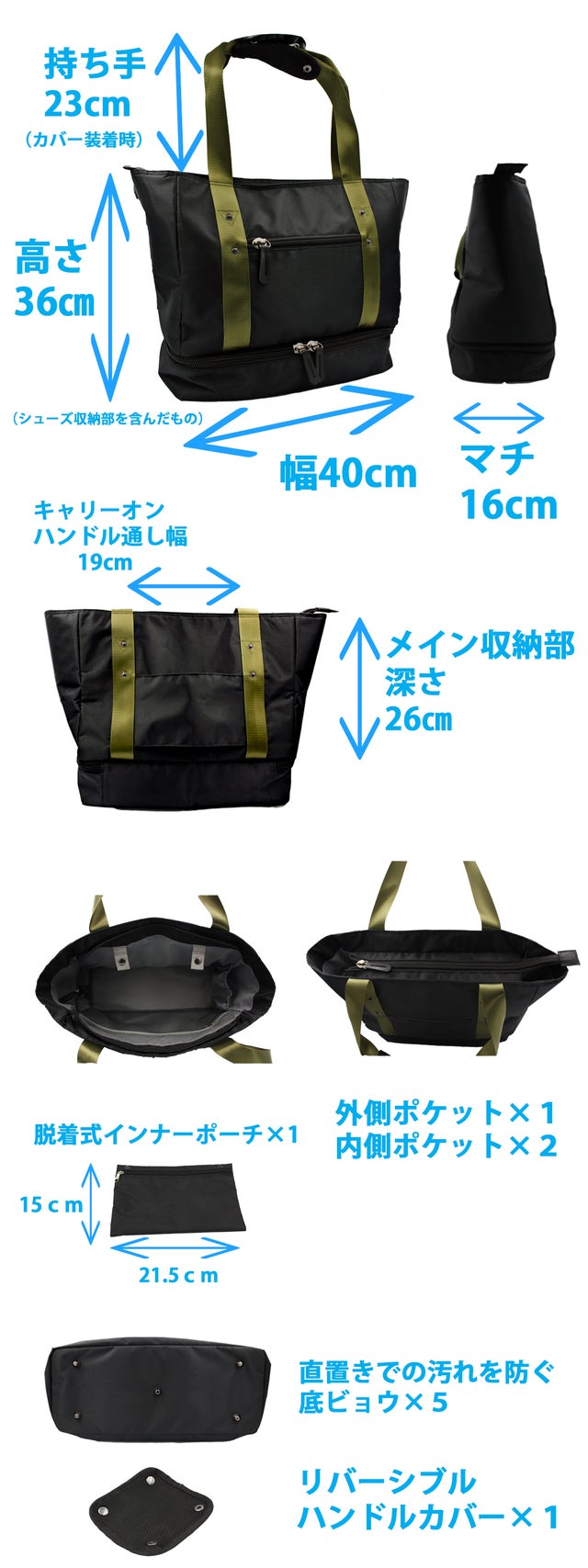 - 出張・仕事帰りでスポーツジム、ゴルフ練習に直行!シューズ in トートバッグ。