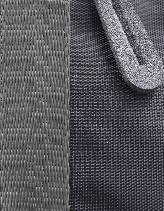 ベンチマークした商品は世界的な人気のビジネスバッグメーカーのものですが、その人気の大きな理由のひとつが、とても丈夫な(軍事用!)1680デニールのナイロン素材を使っていました。しかし、これは糸が太くて丈夫な反面、重いのが難点な生地です。