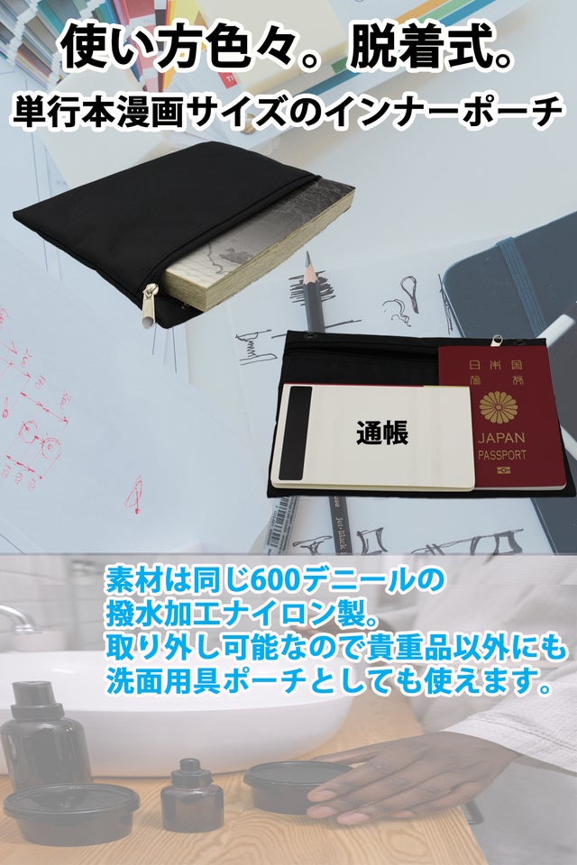 脱着式で小物持ち運びに便利なインナーポーチ×1 が付属。