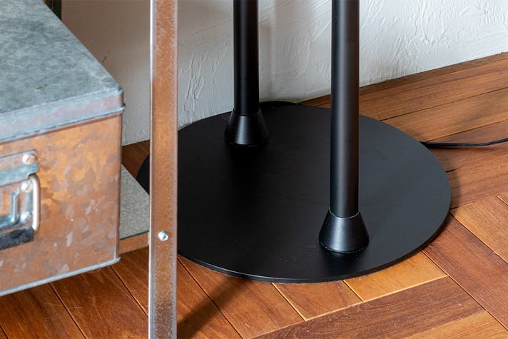 円盤型のベースは壁にぴったり配置できず、