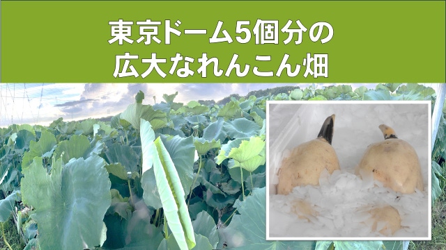 日本一のれんこん生産を誇る茨城県。霞ヶ浦流域の江戸崎にある東京ドーム5個分の広大な蓮根畑。