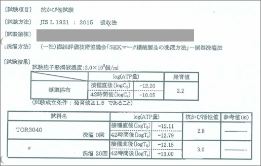 公的試験機関での検査を行った結果、 基準値の約3倍の抗菌性能を証明。