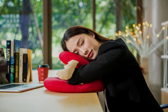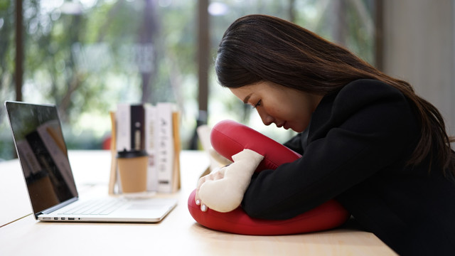 枕によってお昼寝の姿勢をより心地よいものに改善し、起きたときの身体の痛みを軽減しています。