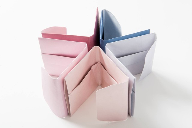 余計な部品を使わず、A3程度のサイズの素材を切って、折紙のように折ってつくることでもし汚れなどがついた場合にも開いて洗って、また折ることで何度でも使用することが可能です。また廃棄する場合にも燃焼時に有害となる物質を含んでおりませんので、そのまま可燃として捨てることができます。