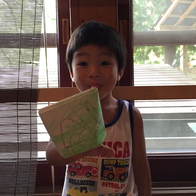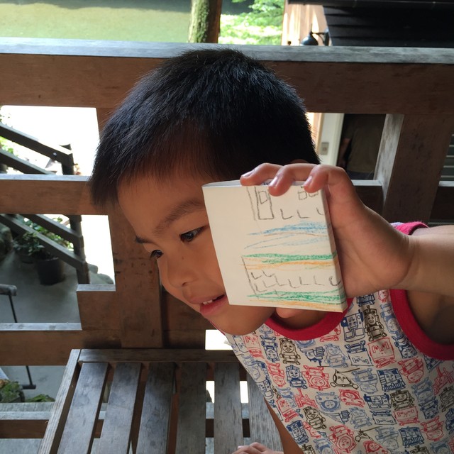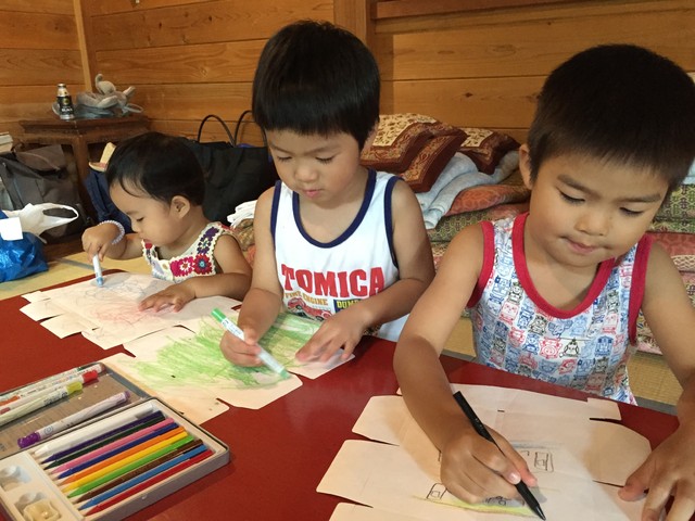 子どもたちに好きな絵を描いていただき折っていくワークショップになります。