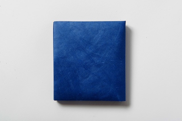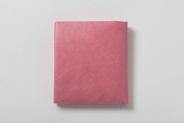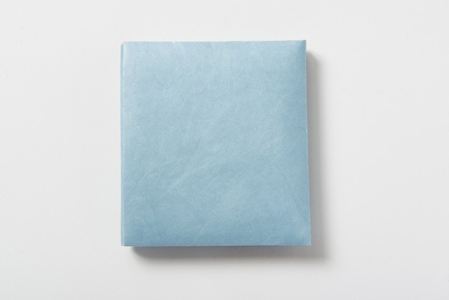 無地の「O-saifu」を折る前の紙のような状態でお届けいたします。折る方法は動画で配信いたしますのでご覧ください。