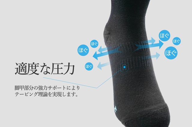 - 足裏:足裏のクッションと適切な圧力で足を支えて怪我をサポート。