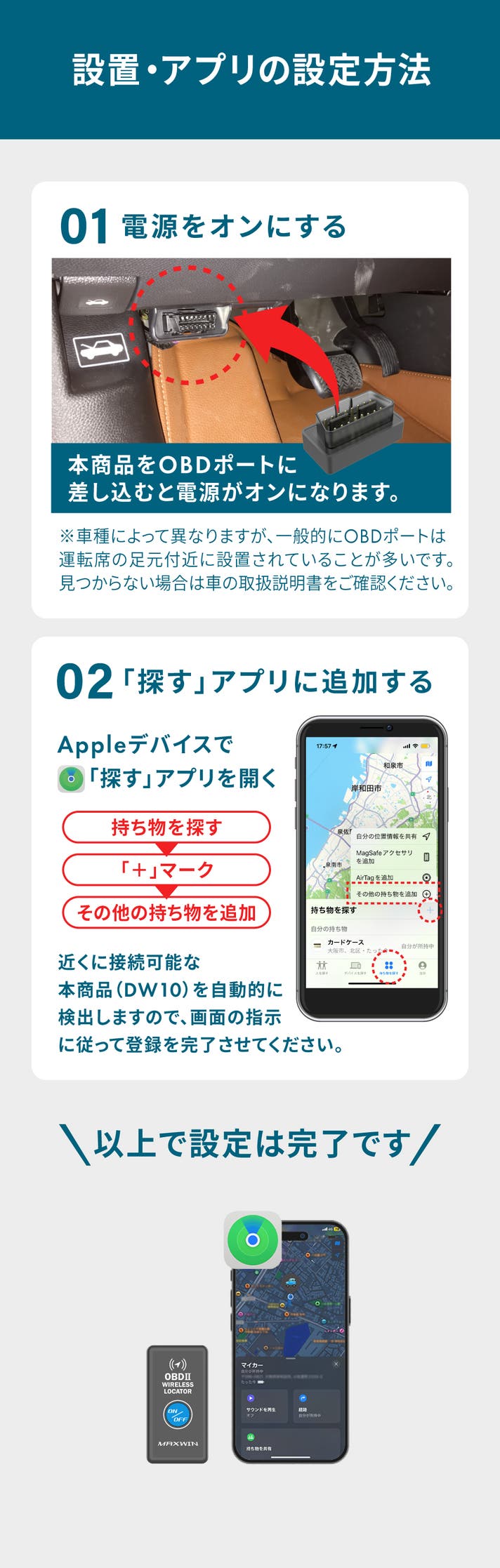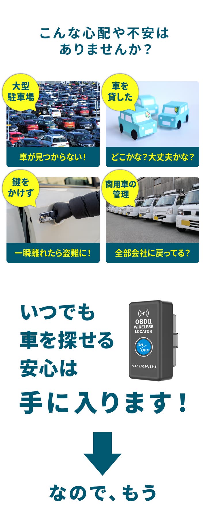 弊社は10年程前からECサイトにて自動車・バイク用品等を主に販売しております。本製品の先行販売代理を請け負うことになり、弊社の新たな試みとしてMakuakeにてプロジェクト起案いたしました。本製品はドライブレコーダーやデジタルインナーミラーの先端技術を引率する車載製品のメーカーMAXWINから生産された製品です。近年相次ぐ盗難の防止や、大型駐車場での愛車迷子、商業車の管理などを常時確認ができるトラッカー『OBD2-DW10』を弊社がMakuakeにて先行販売する運びとなりました。OBD2ポートに接続するだけでiPhoneの探すアプリですぐに確認ができ、常時給電ですが、電力消費量も60㎂とごくわずかなのでバッテリー上がりの心配もほとんど少なく、超オススメの商品です。日々の生活をサポートできる商品を届けたいと思い生産された商品です。本製品に少しでも興味がございましたら応援購入いただけますと幸いです。