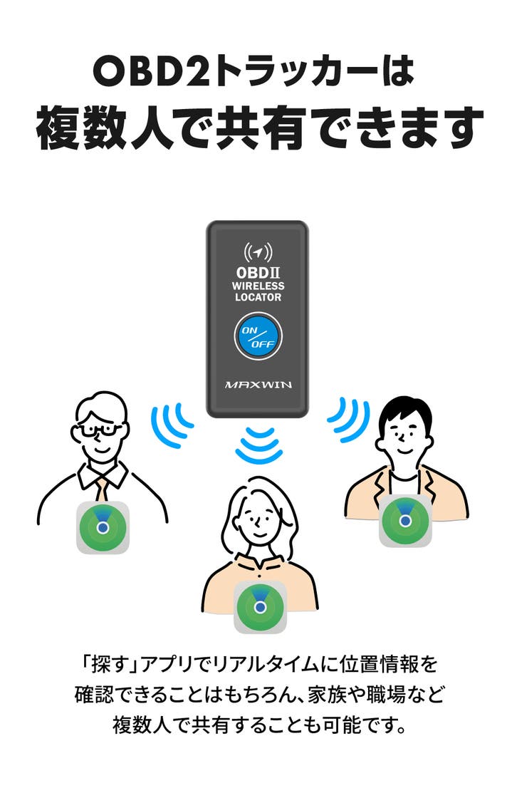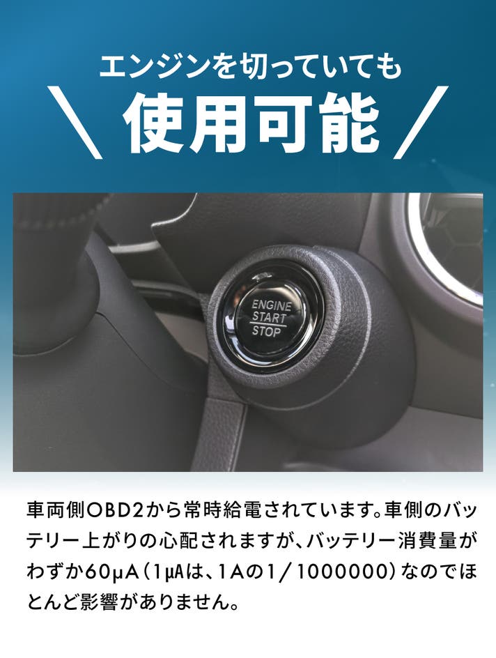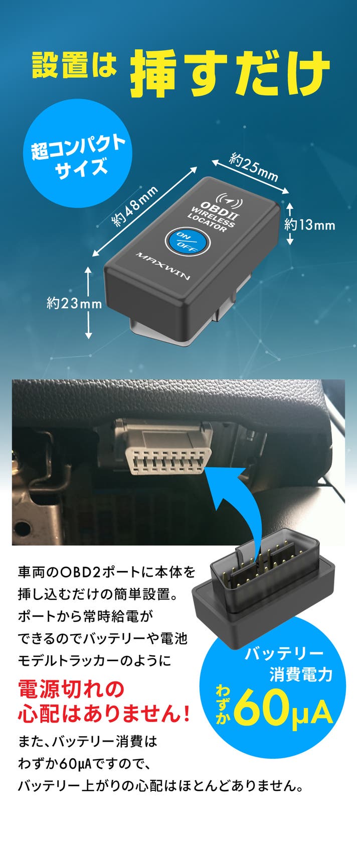 - 【挿すだけ簡単設置】OBDポートに挿すだけで場所が確認できる!エンジンを切っても常時監視