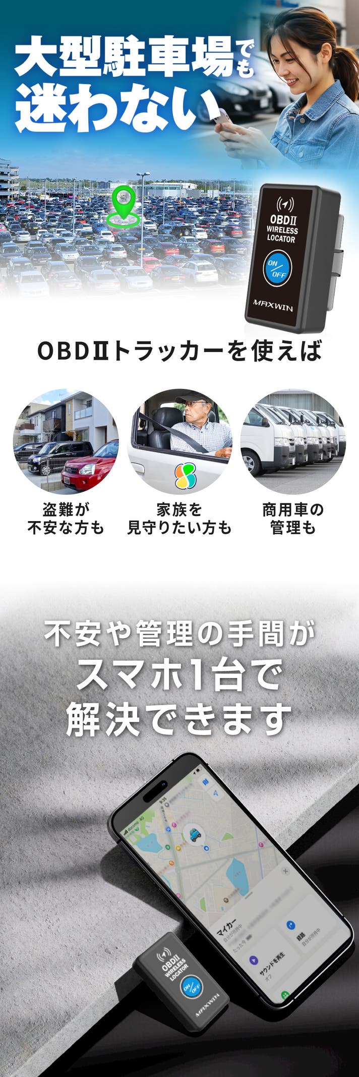 「Makuake(マクアケ)」は、実行者の想いを応援購入によって実現するアタラシイものやサービスのプラットフォームです。このページは、 プロダクトカテゴリの 「【挿すだけ!愛車をすぐ発見】大型駐車場での迷子からサヨナラ!OBD2トラッカー」プロジェクト詳細ページです。