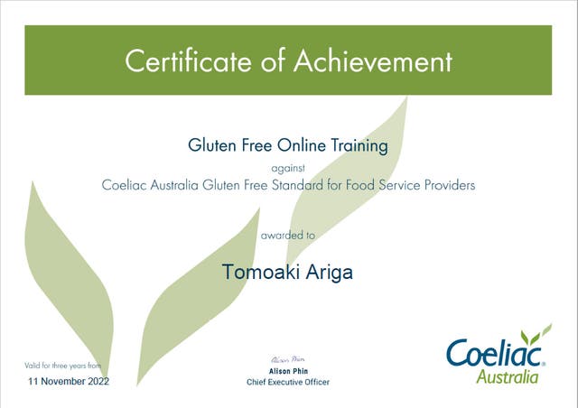 また、Coeliac Australiaという公的な協会が認証制度や事業者向けトレーニングを行って業界をサポートしています。※本事業責任者も加入しました