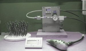 音程バランスが良く個体差がないオカリナ作りを目指して、開発したのがオカリナ調律機です。オカリナの吹き口に入れる空気(息)の強さを数字で見ることが出来るため、安定した調律が出来、微妙な息の強さの違いのオカリナを作ることが出来るようになりました。