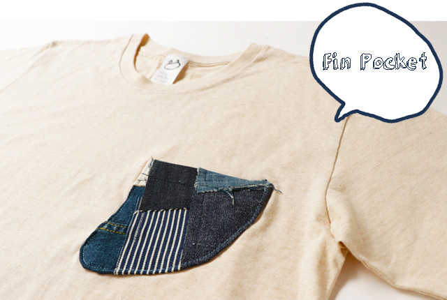 福島いわきで育てられた和綿入りボディのTシャツに、パッチワークプレートから切り出されたフィン型ポケットをつけたMakuake限定アイテムです。