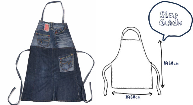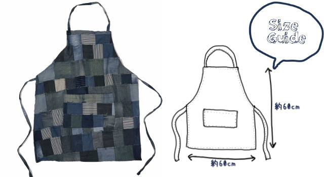 古着ジーンズを解体して、つなぎ縫い合わせたエプロン。