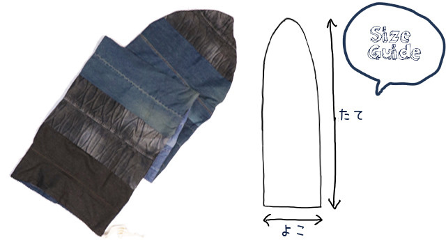 古着ジーンズを解体して、つなぎ縫い合わせたサーフボードケース。