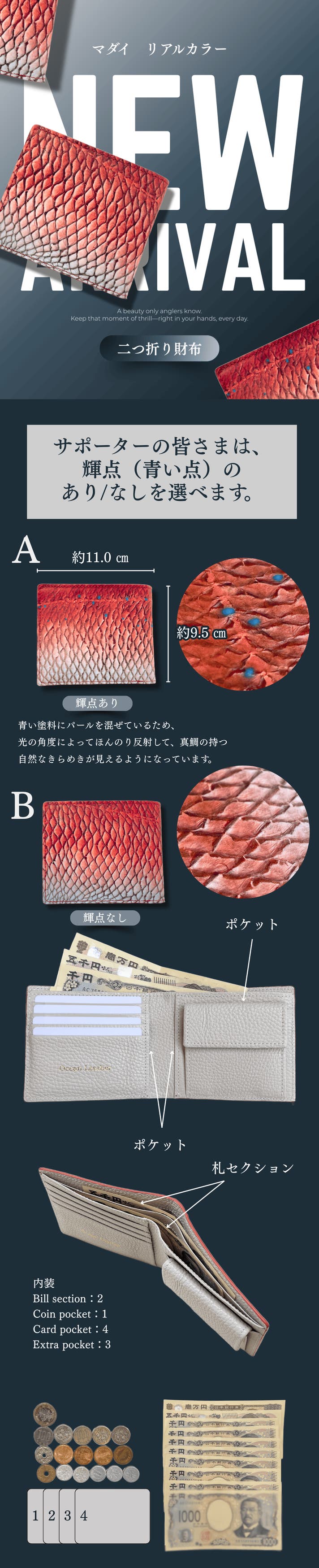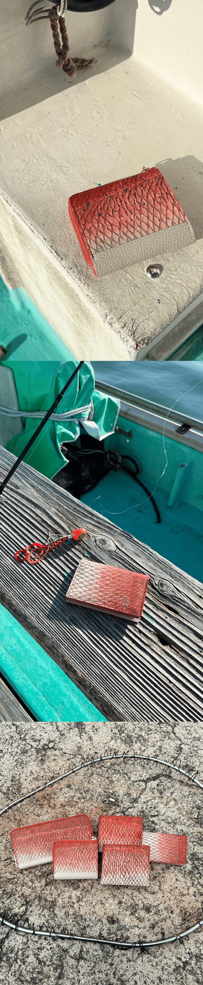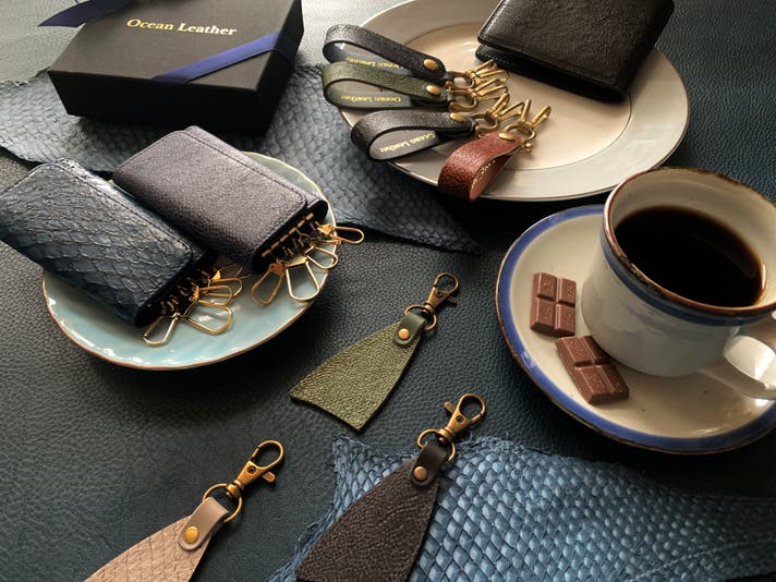 私たちは、「海をその手に」というコンセプトを掲げ、財布、キーケース、アクセサリーなどの様々なフィッシュレザー製品を提供しています。私たちは、単に魚を消費するのではなく、彼らの生き様を尊重することを目指しています。そのため廃棄物削減、漁業者の収入向上、そして環境に優しい植物タンニン鞣し方法に重点を置き、廃棄された魚の皮やウロコを製品にアップサイクルしています。私たちの製品を通して、海と魚、そして私たちとの繋がりをより身近に、より大切にされること願っています。