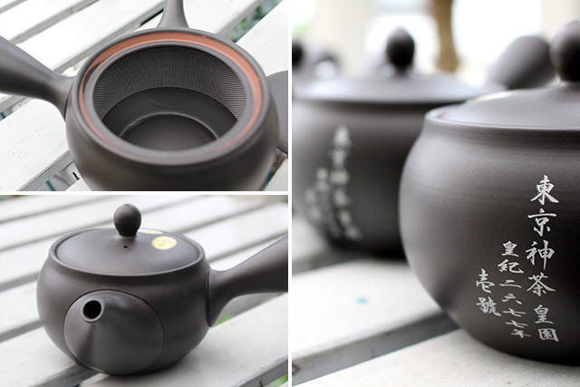 しかし、一般に普及している赤茶色(朱泥)の急須では、斬新さにかけると思い、大きさ・重さ・そしてデザイン性を重視したマットグレーの急須にシリアルナンバーを入れたオリジナルを製作致しました。