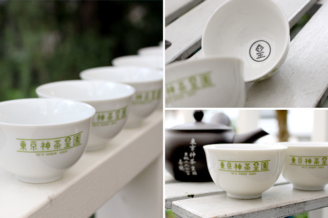 「東京神茶 皇園」のロゴが入ったオリジナルデザインの湯呑みです。