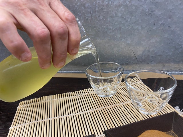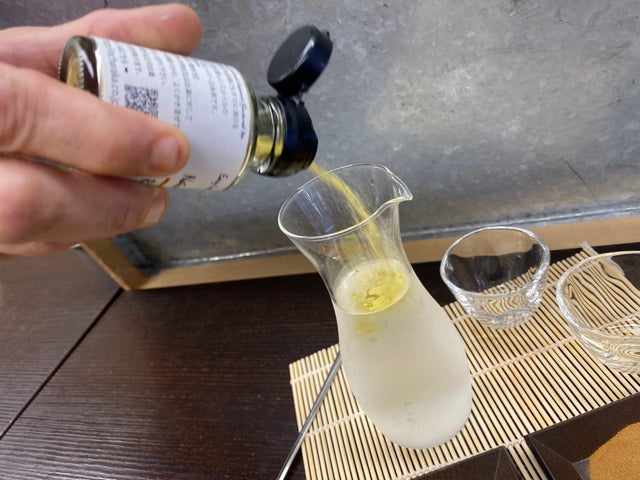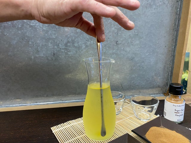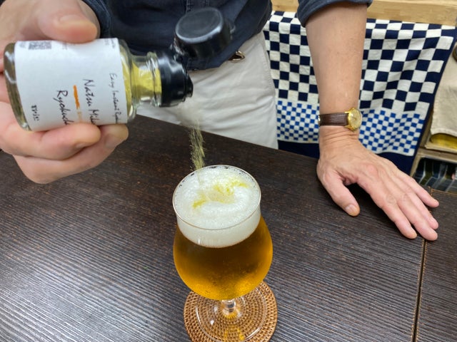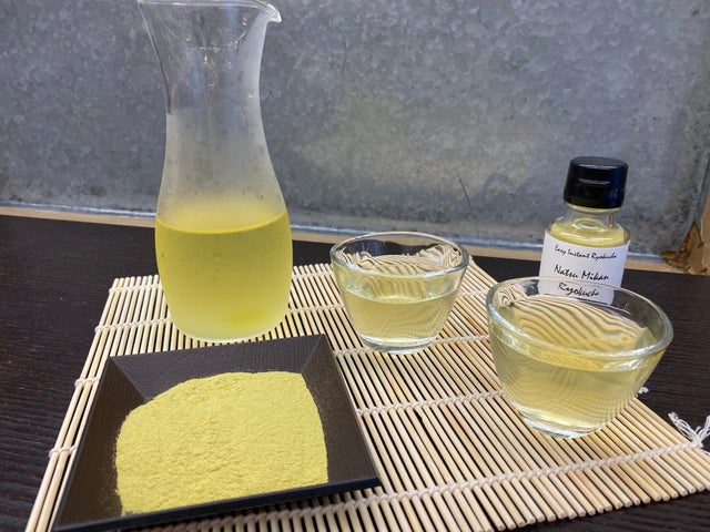 水にインスタントエキスパウダー日本茶を振りかけして、自分のお好みの味にできます。