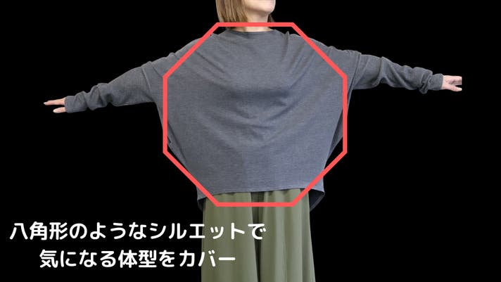 - 8角形のビッグシルエットなのに上品にみえてドレープデザインで体型カバー