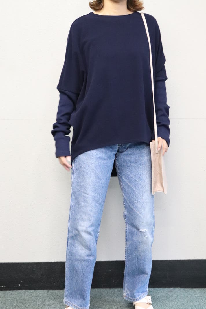 また袖はゆとりのある変形ドルマン仕様のデザインで、