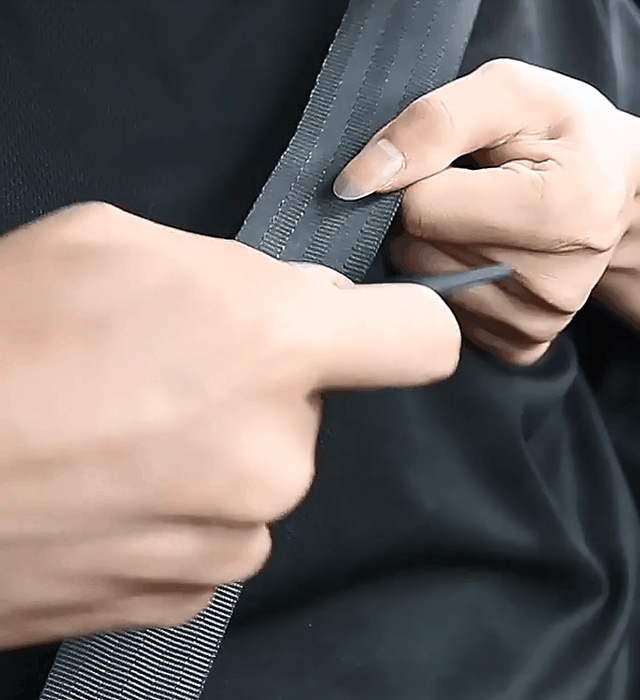 安全に使える割刀がついています。専用カッターが埋め込まれており、指を切らないように、シートベルトを迅速に切ることが可能。安全に使うことができます。