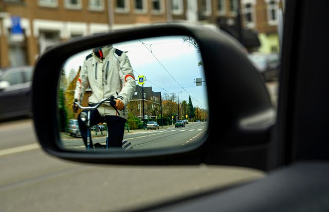 左側のドアミラーでは通常2つほどの車線しか見えませんが、右側のアウトグラス750を使用すると、広角で3車線以上を一度に確認でき、車の流れを簡単に把握できます。