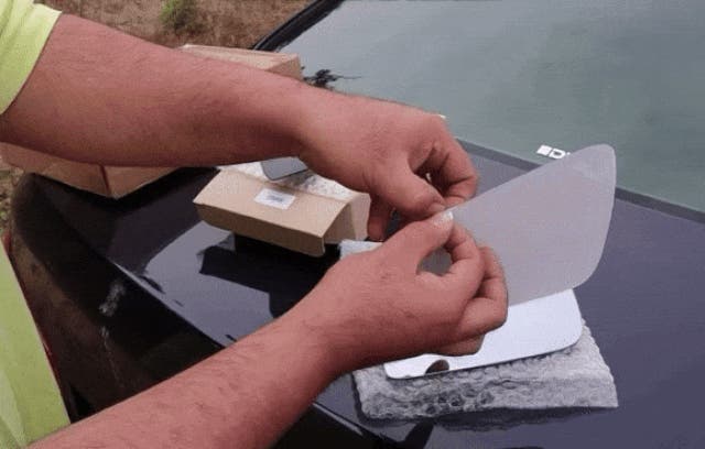 ヒーター内蔵型の場合(輸入車)のみヒーターシールを貼り付けてください。