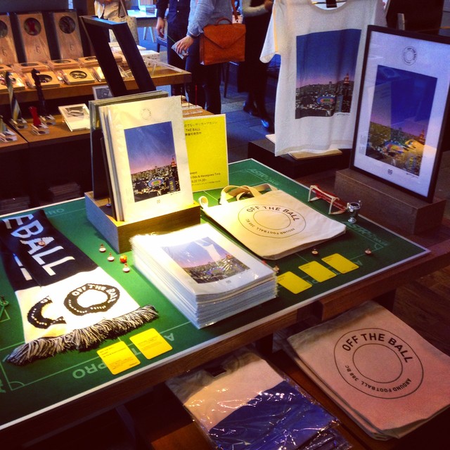 そんな理念のもと私たちは昨年、「サッカー選手のでないサッカーマガジン」をコンセプトにした雑誌「OFF THE BALL 」創刊準備号(0号)を制作しました。この号では、大滝詠一「A LONG VACATION」のジャケットを手がけたイラストレーター永井博がカバーアートを手がけ、その他、フードエッセイスト平野紗季子によるスタジアムグルメガイド、写真家牧口英樹によるサッカーアイテムを用いたファッションページなどを企画・掲載しました。また本誌に加え、BEAMS Tとのコラボレーションで制作したTシャツ、プレミアリーグのオフィシャルグッズも手がける英国マンチェスターのTIE & SCARF COMPANY社製のフットボールスカーフ、観戦中も楽チンな肩からかけられるトートバックなどもラインナップ。代官山蔦屋で約2週間にわたって行ったフェアも好評を博しました。