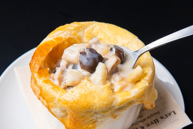 それから、「パイ包焼き」は、サクサクのパイ生地でクラムチャウダーを包んだ一品。