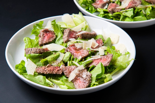 牛肉のステーキを薄切りにし、美しくお皿に盛り付けたタリアータは、ビュッフェの花といってもいいほどの存在感。