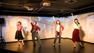 店内の白い壁にはプロジェクターで映像を上映。一層歌やダンスを盛り立てます。