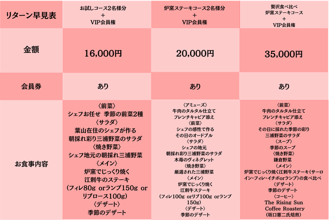 makuake限定 炉窯ステーキコース2名様分+VIP会員権(税・サ込)